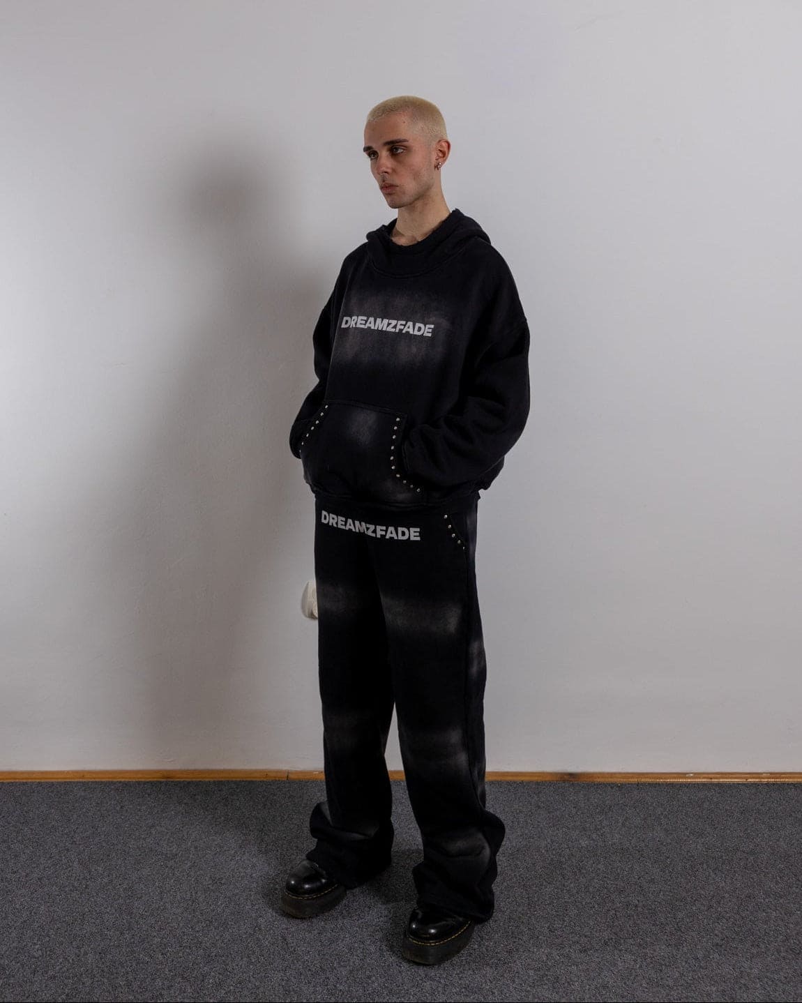 The Classic Boxy Hoodie is a heavyweight hoodie with a boxy shape and a faded look for that vintage feel. Made from 600 GSM French Terry cotton and detailed with studded rivets. Drop shoulders and a sunfaded wash complete the look.